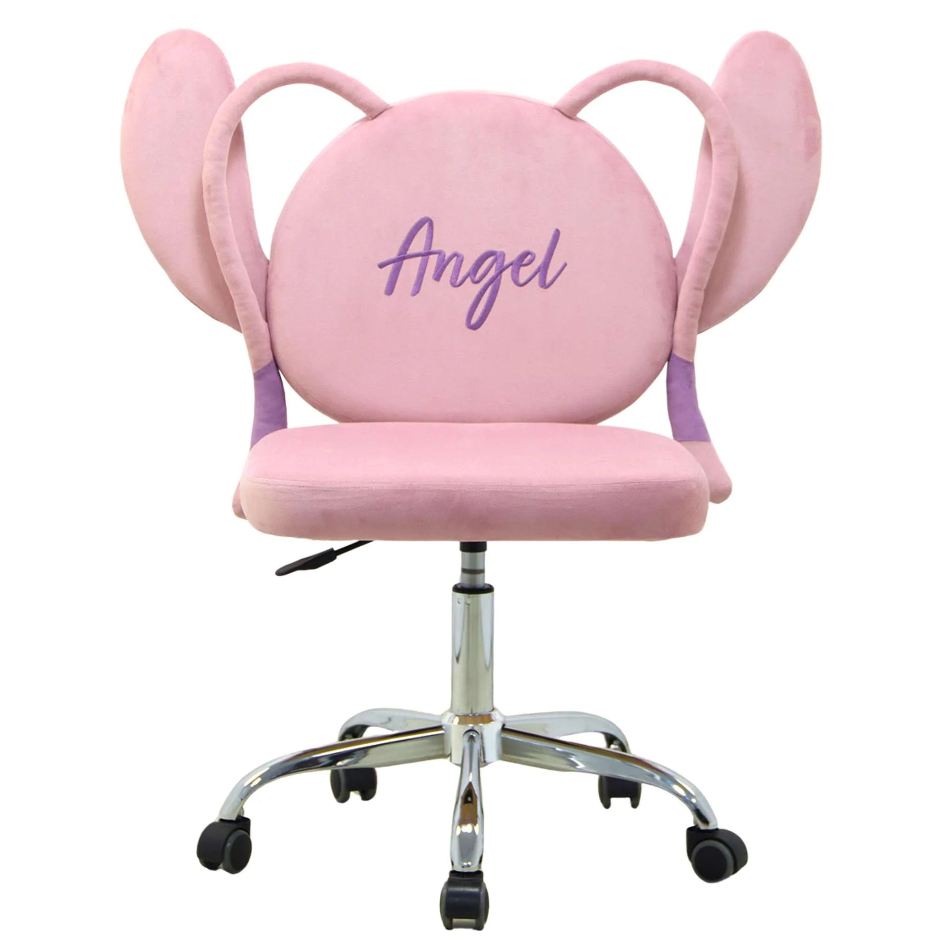Crafted for ultimate comfort and charm, this velvety chair features embroidered details that highlight Angel's adorable features. With smooth-rolling wheels and a 360-degree swivel, you can effortlessly glide from your vanity to your wardrobe or mirror without leaving your seat.